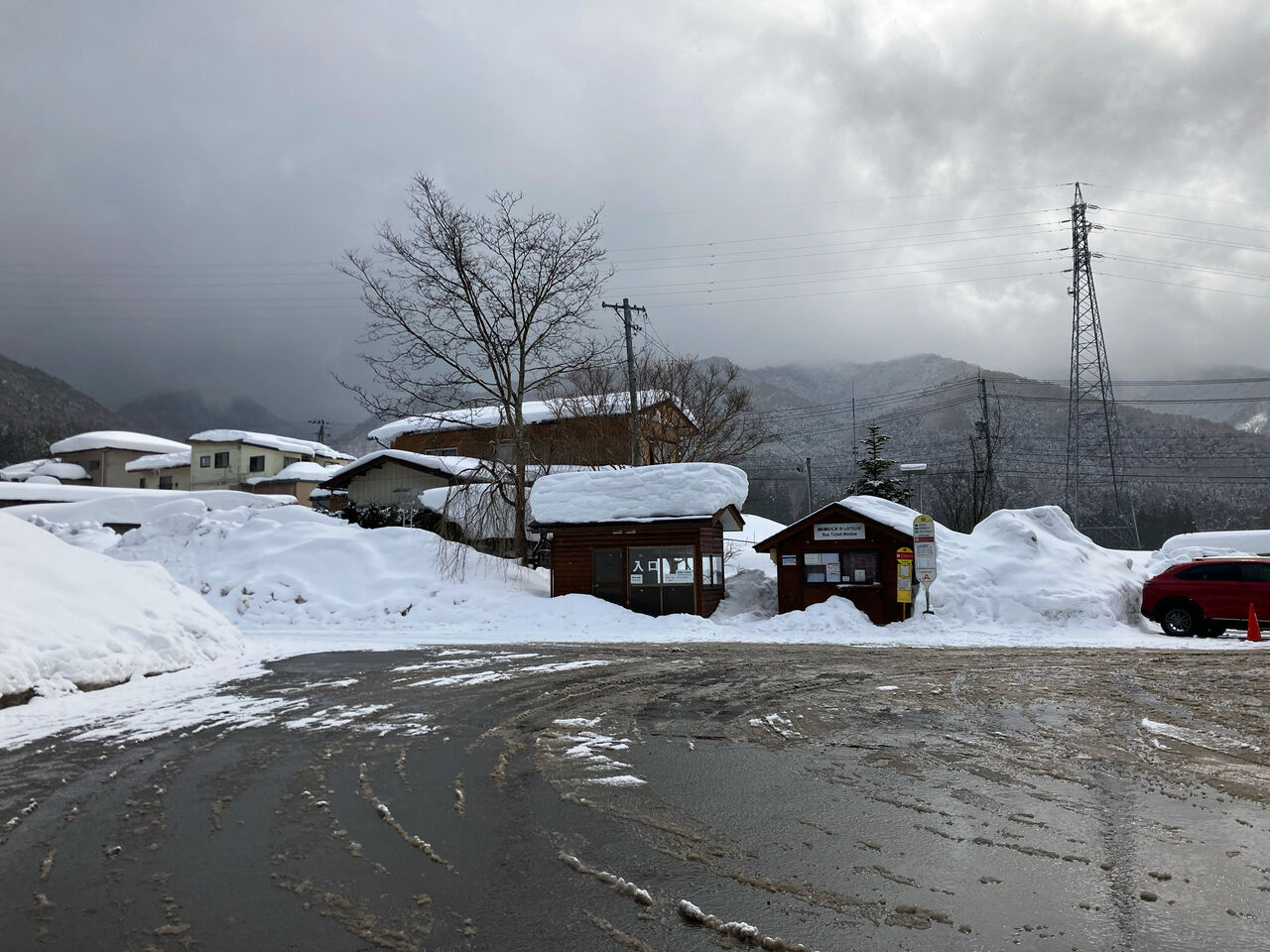噂のバス停までトコトコ。